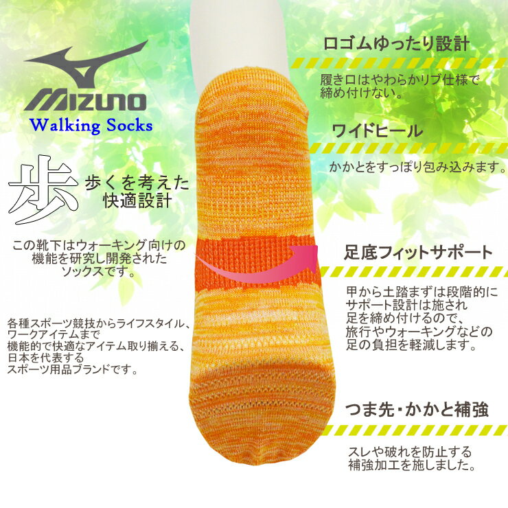 素材 ポリエステル・綿・その他 サイズ 24〜26cm 特徴 MIZUNO 歩【歩くを考えた快適設計】 この靴下はウォーキング向けの機能を研究し開発されたソックスです。