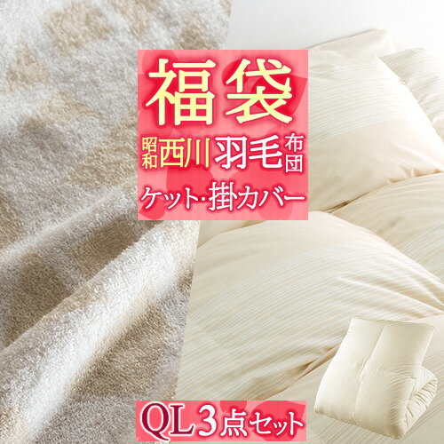 全品P5倍★【羽毛 福袋 2020】昭和西川 羽毛布団 タオルケット 掛布団カバー 日本製 3点セット クィーン ポーランド産グースダウン93% DP410 綿100%掛けカバー 今治タオルケット クィーンサイズ